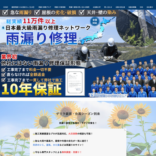 1. 万が一、修理で雨漏りが直らなければ全額返金対応してくれる!